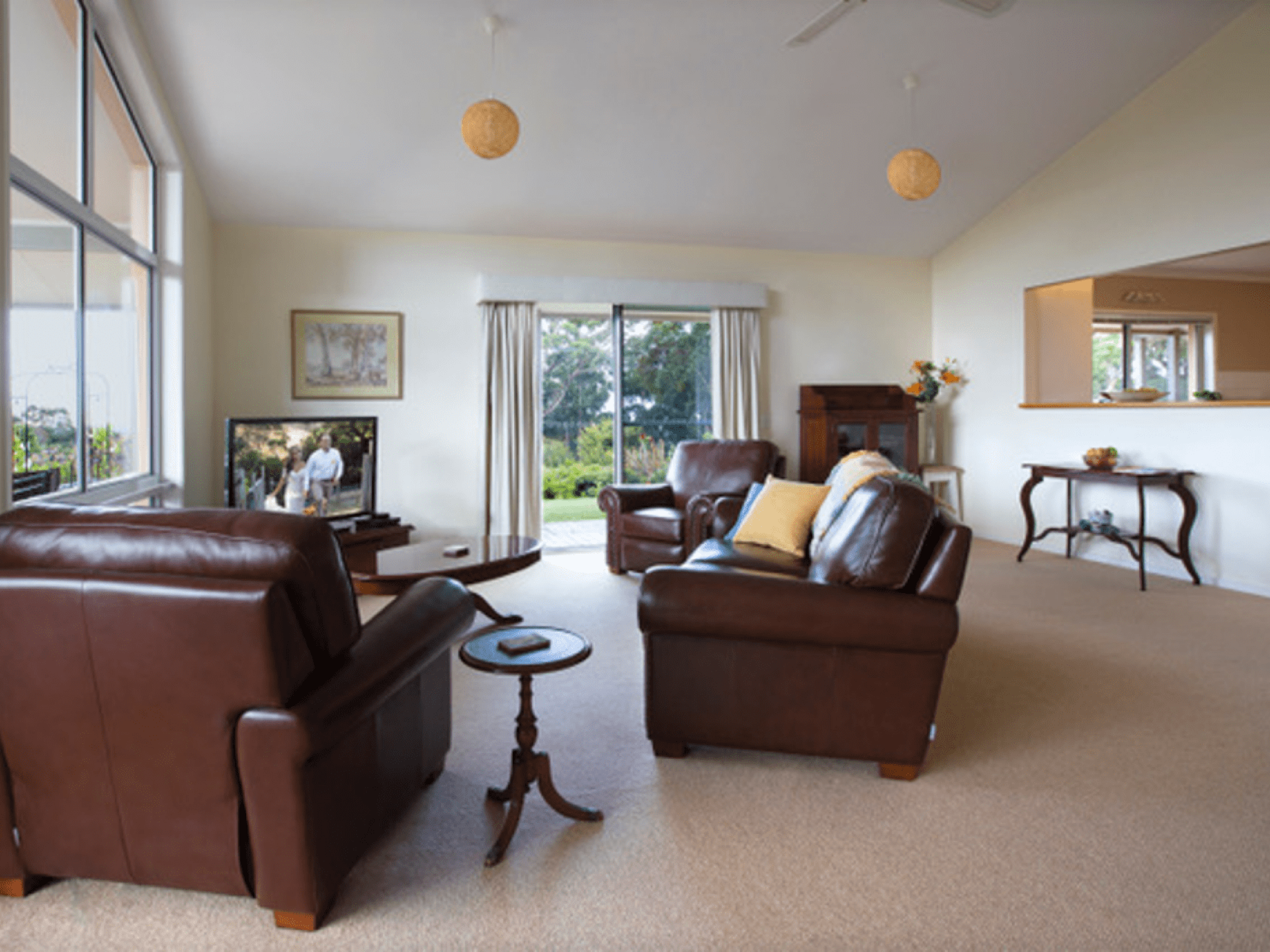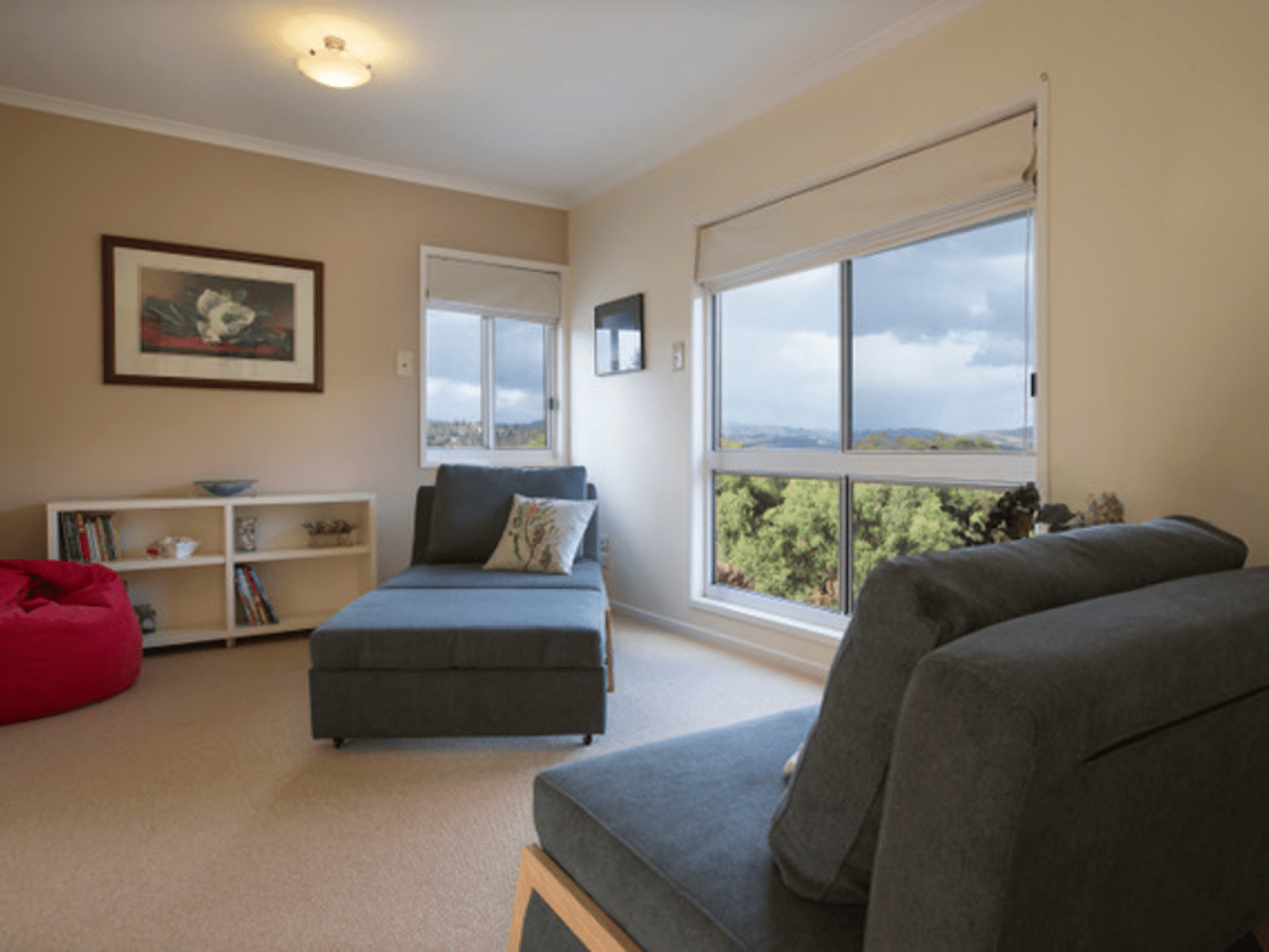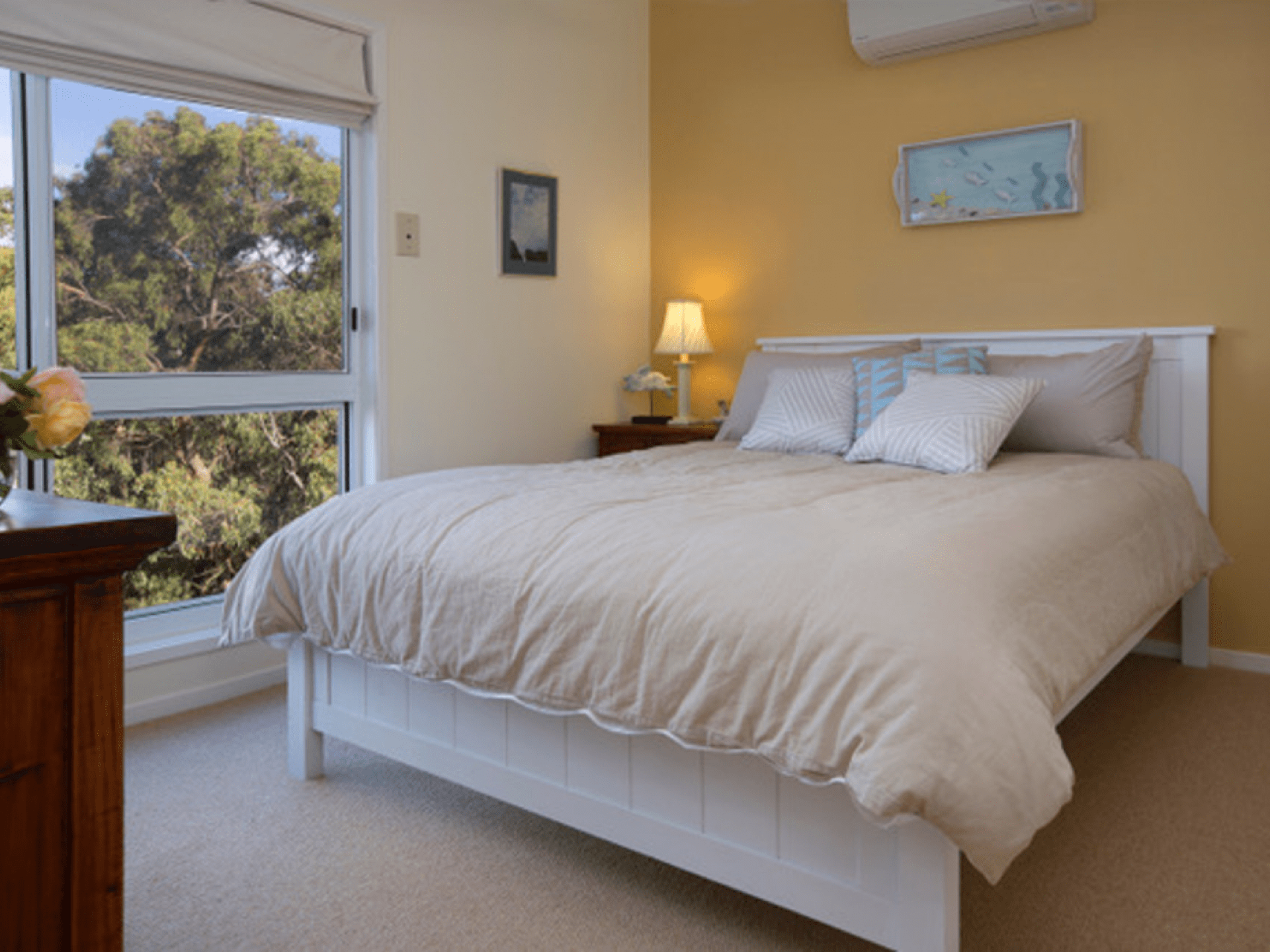 The contemporary and spacious double storey home offers a variety of living and accommodation zones with a capacity of sleeping 6 in 3 spacious bedrooms and a downstairs sunroom/bedroom. The main has a king-size bed with ensuite and spa bath and the other rooms have queen size beds.