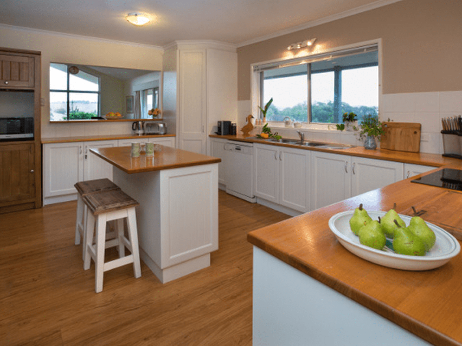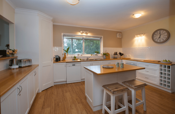 The kitchen is a cook’s delight with access to fresh local produce and choice of dining areas. Dining on the outdoor decks watching the sunset, listening to the birds and occasionally, the resident koala saying goodnight is pure delight. Alternatively, enjoy nearby notable local restaurants, such as The Fish Creek Hotel, Gurney’s Cidery and Promontory Restaurant & Winery.