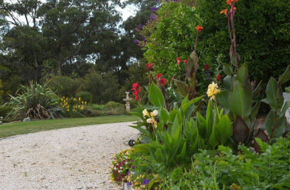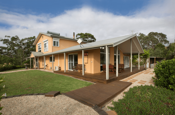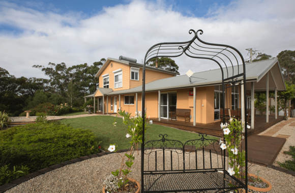 Mhara Downs offers the perfect getaway with complete privacy, entry gained by its own driveway through a 12 acre natural bush park of remnant eucalypt forest offering several quiet walks, sometimes spotting an echidna, wombat or wallabies and a variety of birdlife. This all leads up 1 acre of landscaped and terraced gardens including lawns areas, organic vegetable beds, BBQ facilities and swimming pool.